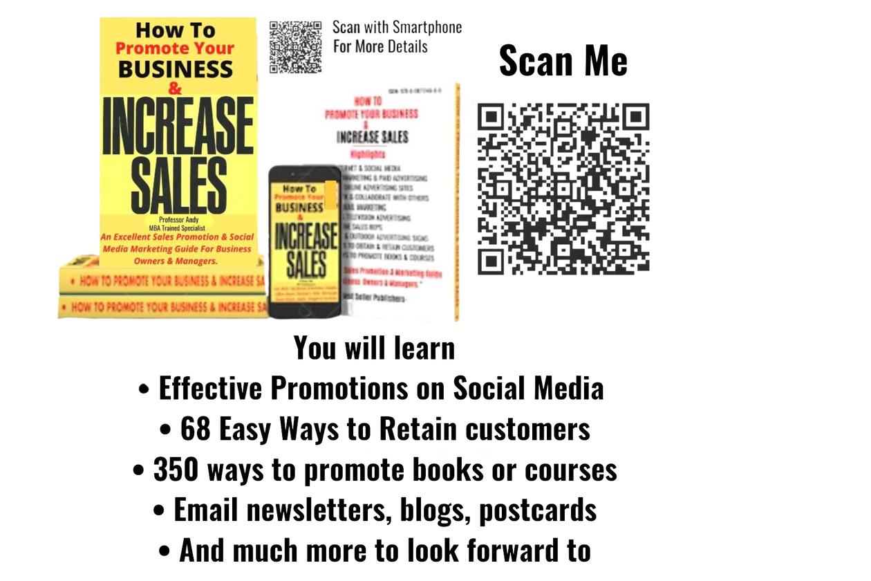 How To Promote Your Business & Increase Sales: https://www.amazon.com/~/e/B0BNZFP4HM
